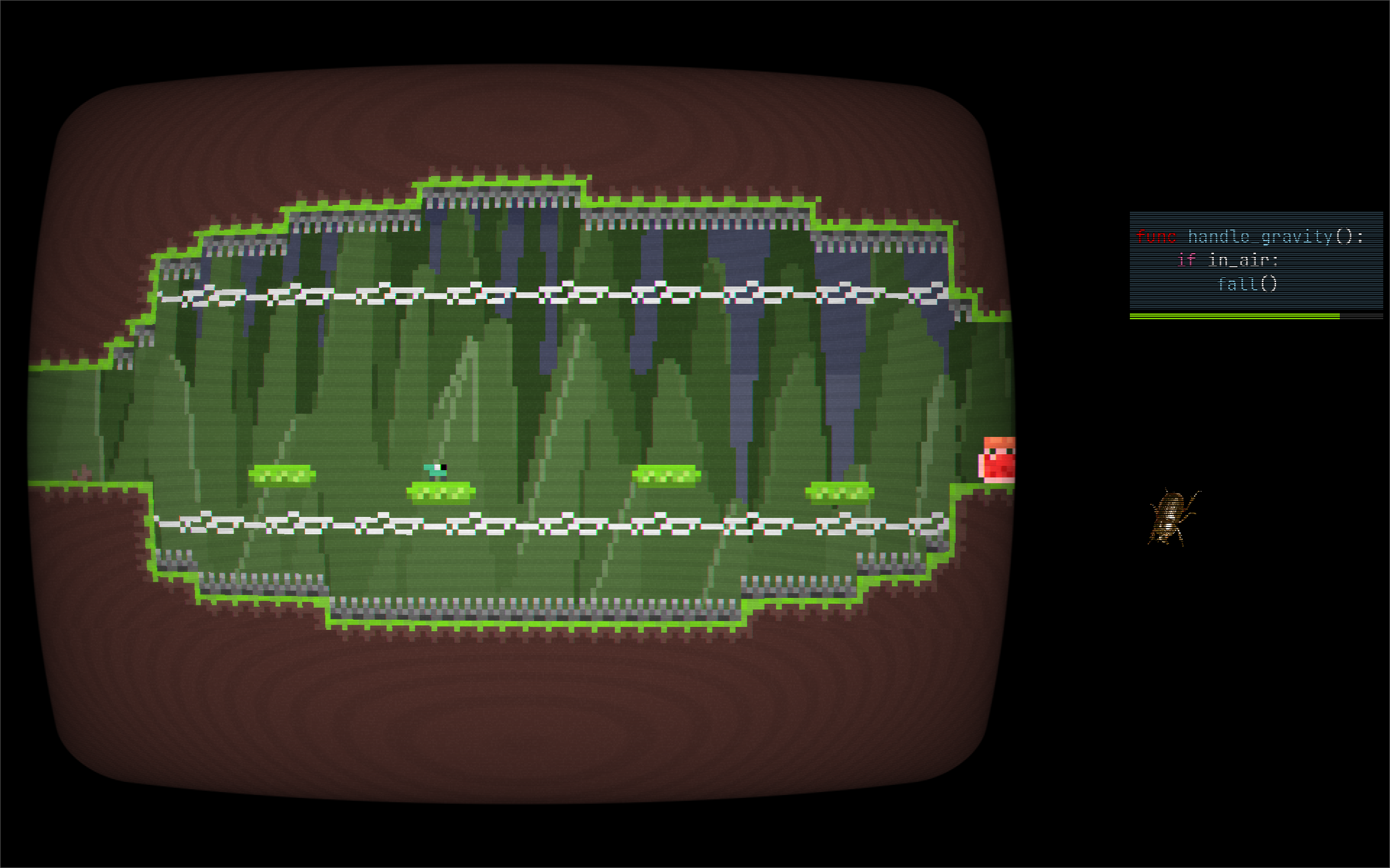 Take control of a little critter and, with the help of an infiltrating beetle, cause errors in the game's code in order to progress through platforming challenges.